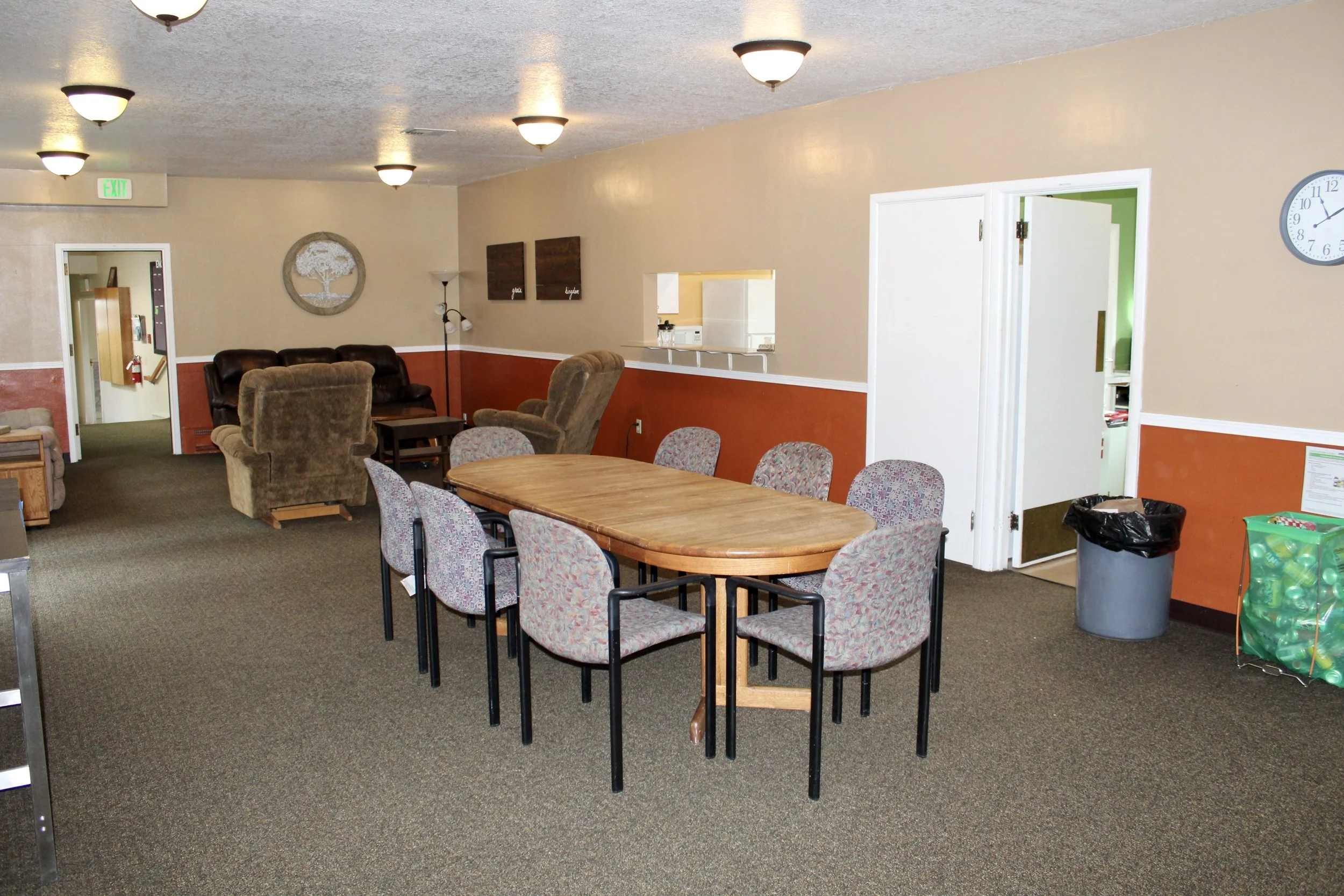 All resident rooms are upstairs, each room different. There are 4 apartments, complete with a kitchenette, and 9 dorm style rooms. Each room has its own bathroom. We’d love to show you around! Schedule a tour with our Director.